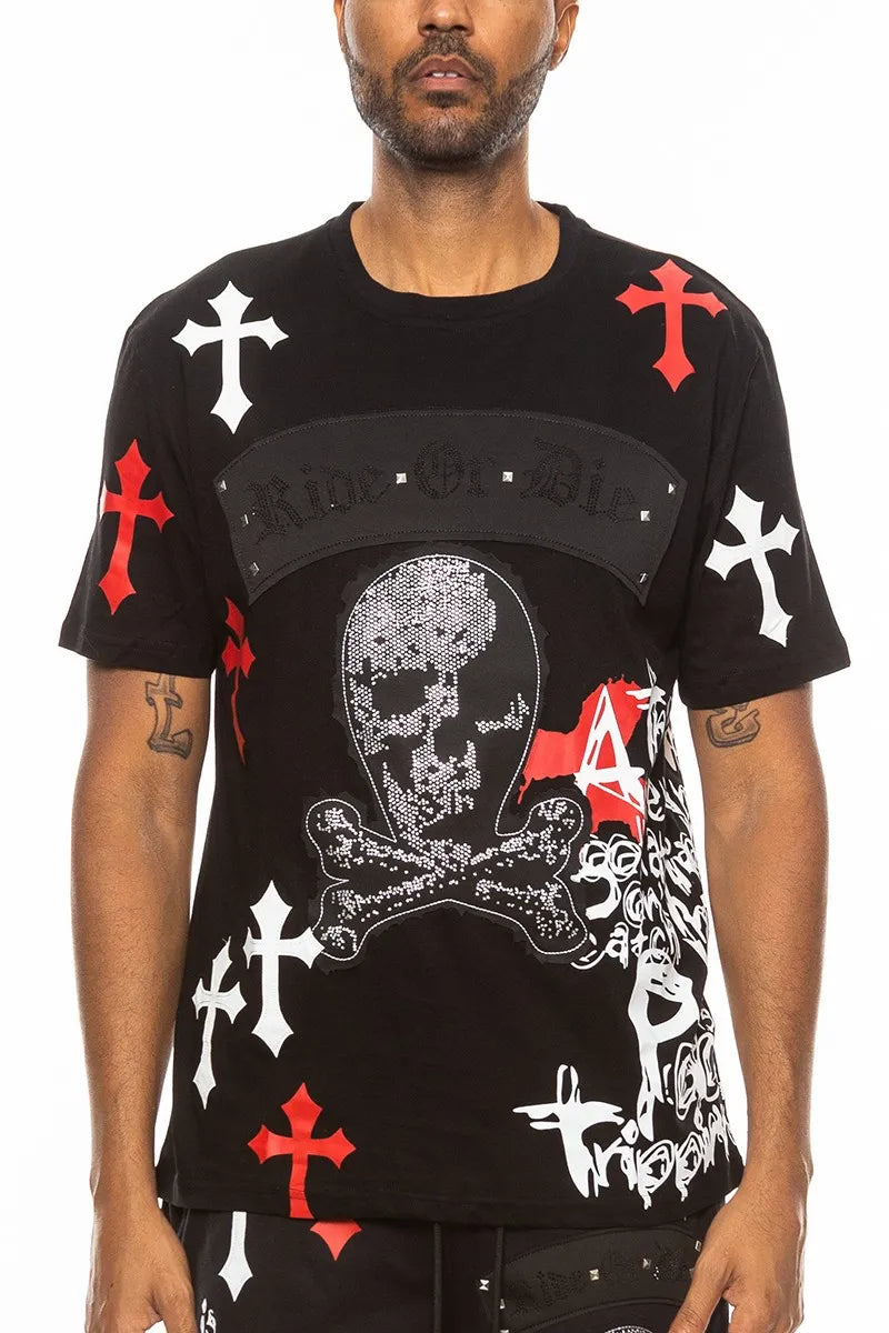 WEIV Men's Full Size Cotton Print Chome Cross T-Shirt Plus Size