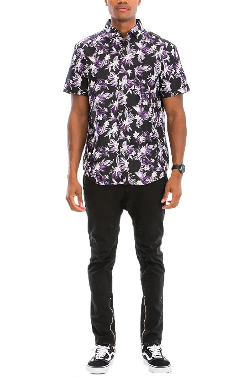 WEIV Men's Full Size Hawaiian Print Button Down Shirt Plus Size
